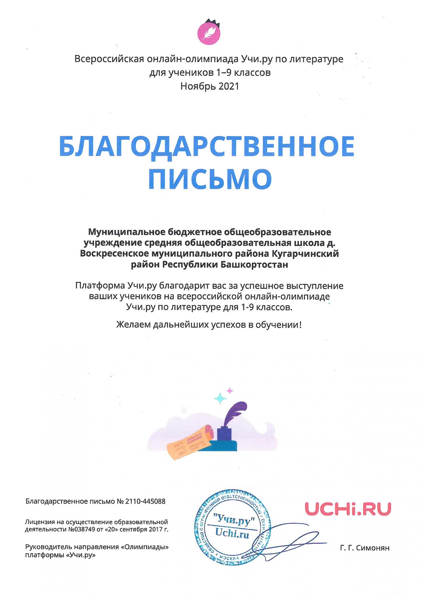 Успешное выступление на платформе Учи.ру.