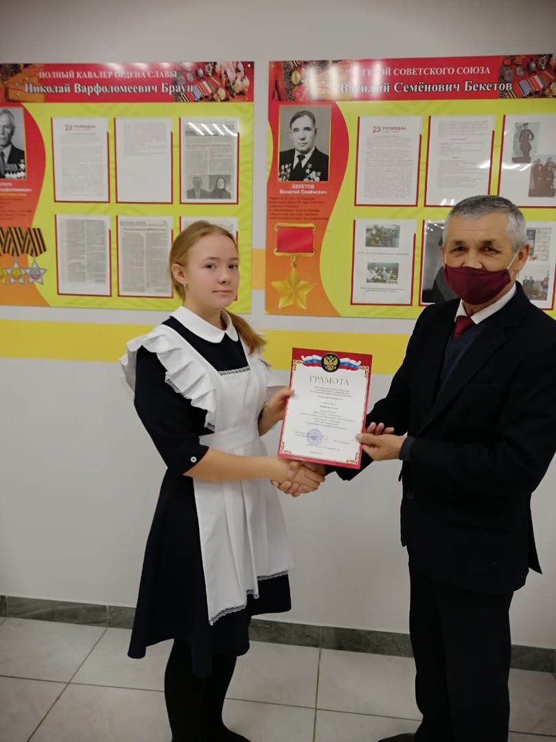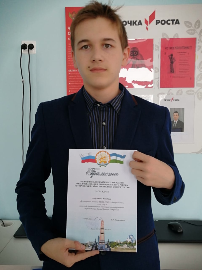 Валиев Александр, обучающийся 8 класса, призёр по обществознанию (учитель Давлетбаев Ринат Халиллович)