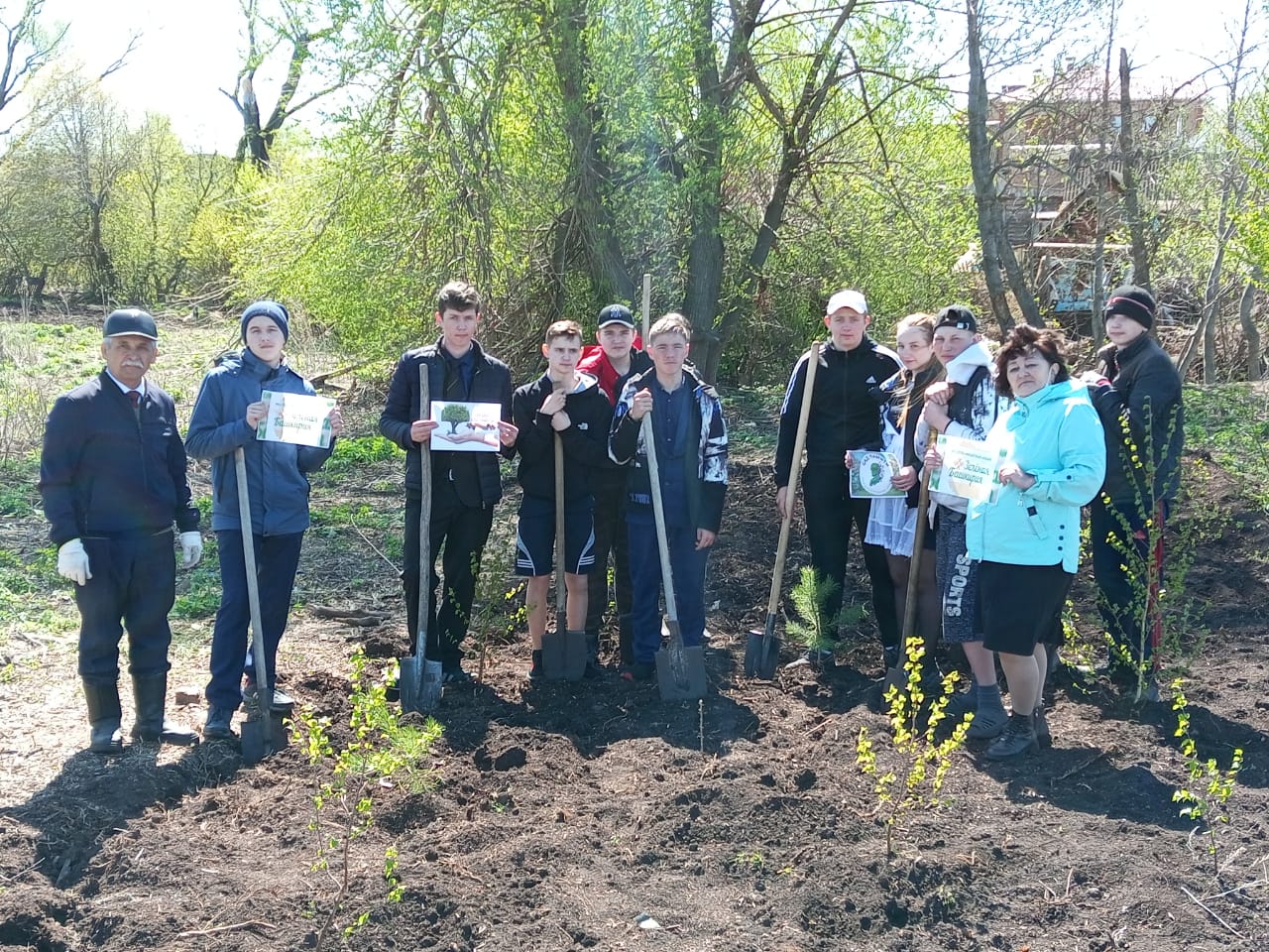 В акции участвовали обучающиеся 7,8,10 классов. Всего было посажено 30 сосен, 100 берез, 60 акаций. Теперь предстоит поливать и ухаживать за саженцами, чтобы они принялись.