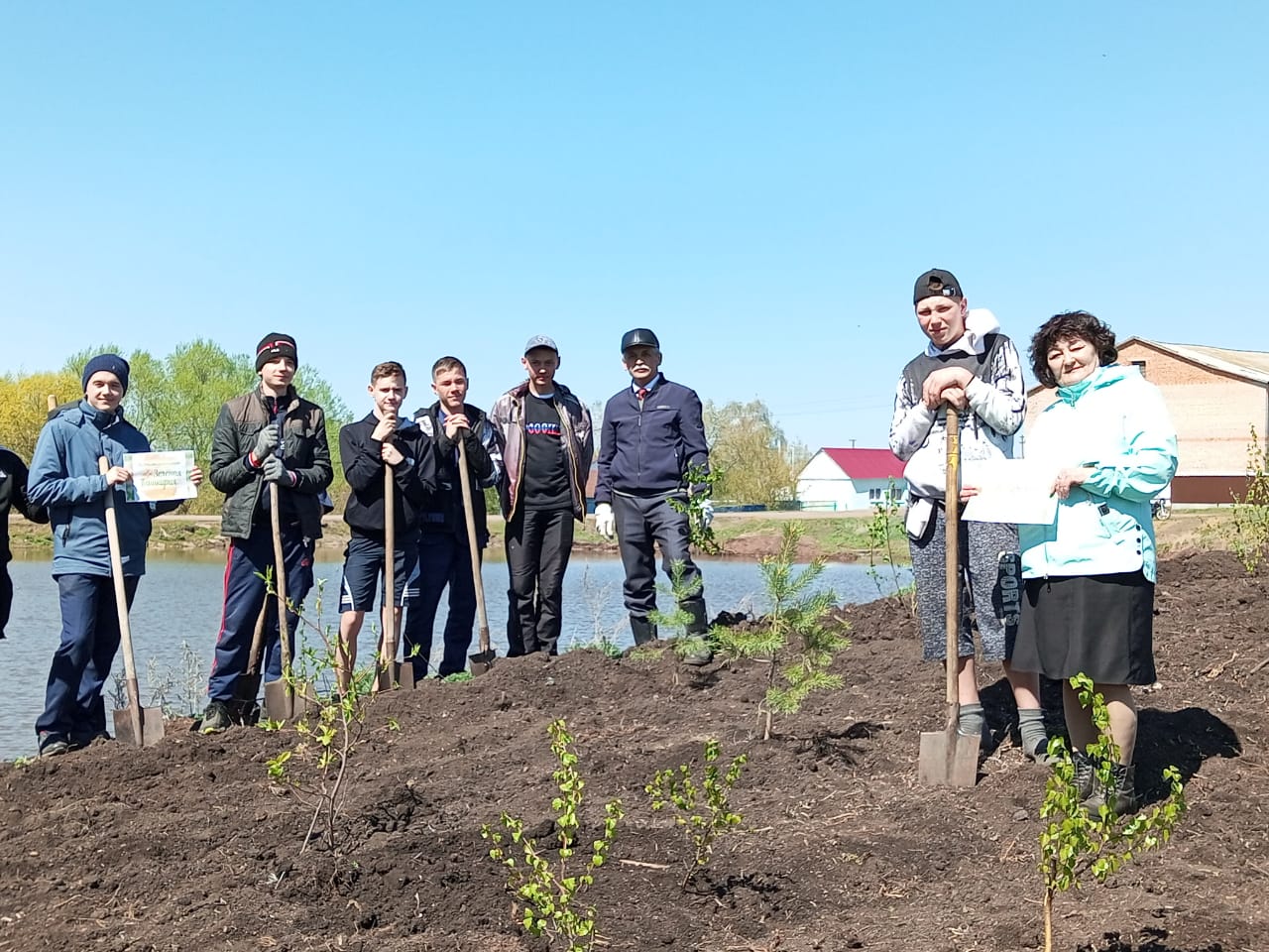 В рамках акций «Зелёная Башкирия» и «Сад памяти» 30 апреля высадили саженцы деревьев. Для новых лесных насаждений выбрали территорию пруда, который находится в центре д.Воскресенское.