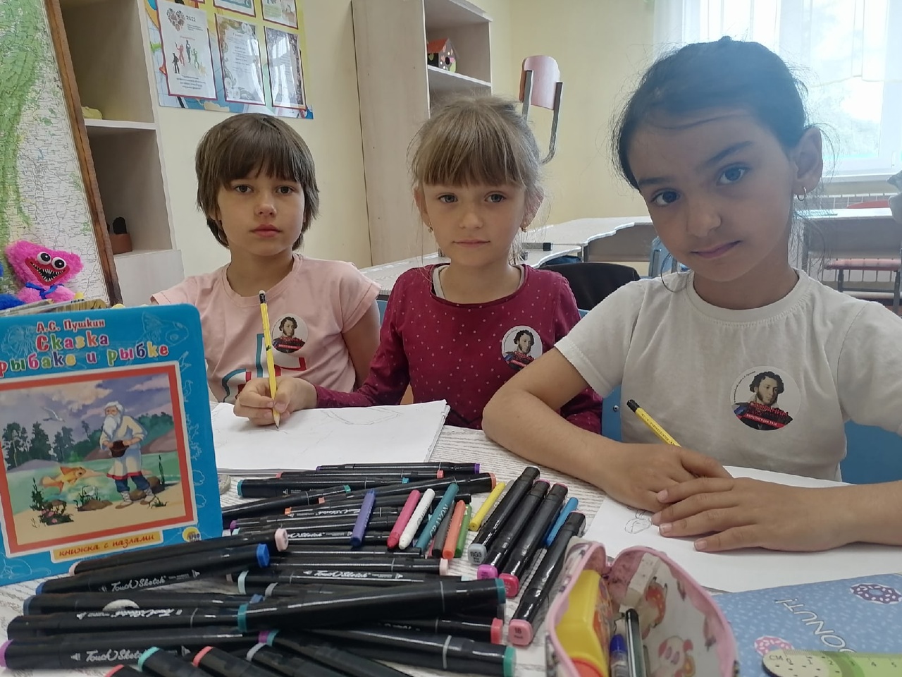 223 года со дня рождения А. С. Пушкина. Каждый ребёнок знаком с его творчеством, а сегодня появилась возможность закрепить свои знания и узнать много нового интересного. Ребята читали наизусть стихотворения, отвечали на вопросы викторины, рисовали иллюстрации и смотрели мультфильм по мотивам пушкинской сказки. По итогам всех конкурсов "Феникс" оказался впереди всех отрядов