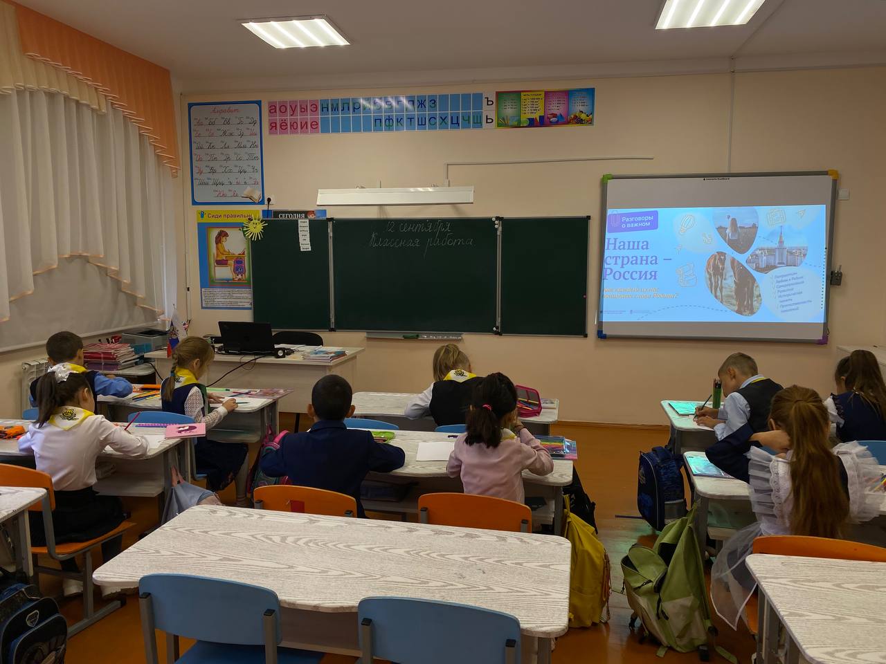 12 сентября в 1-11 классах прошли внеурочные занятия по теме «Наша страна -Россия». Проект «разговоры о важном».