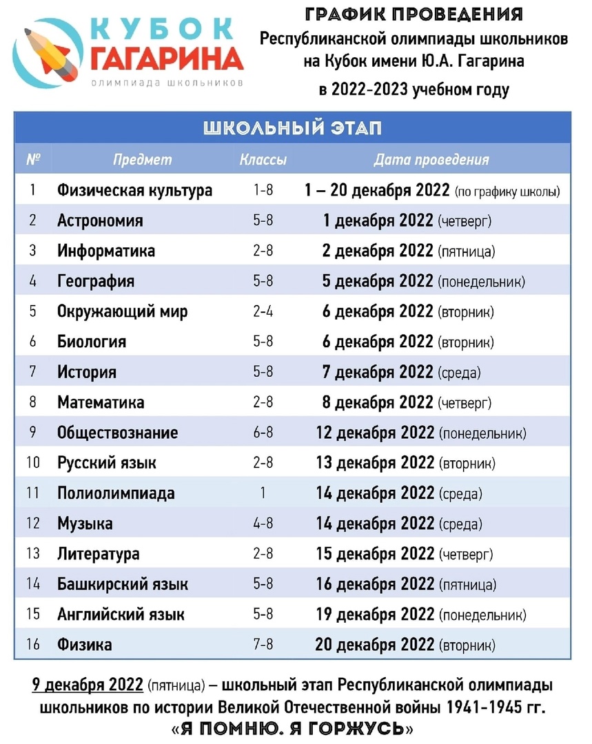 Кубок Гагарина.График