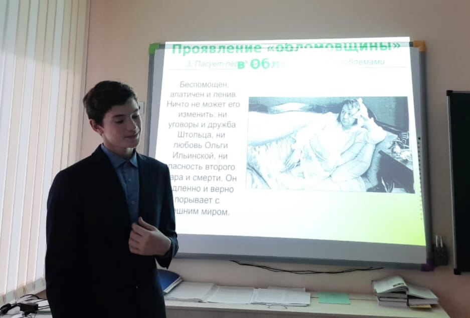 Обучающиеся 10 класса на уроке литературы определяли психотип Обломова. Этому помогли интересные фрагменты из текста романа. Илья Ильич Обломов, который проводил все время на диване, в ленивой полудреме, – мягкий меланхолик. Но в жизни редко приходится встречать «стопроцентных» флегматиков или сангвиников, так как большинство людей соединяются в себе черты разных темпераментов.