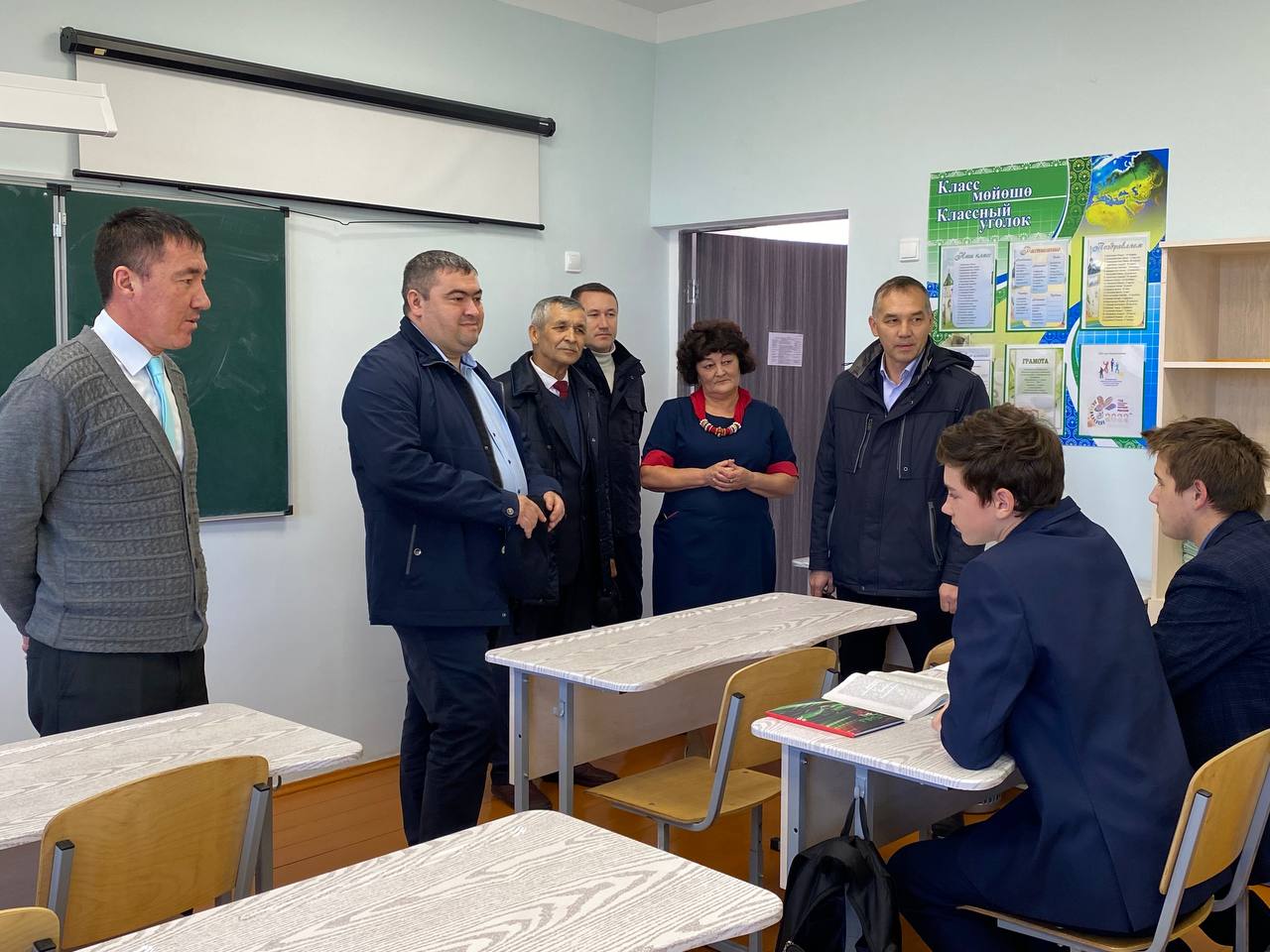 Комиссия ознакомилась материально-технической базой школы, учебными кабинетами, пришкольной территорией. Беседовали с обучающимися и учителями. Марат Салимович обратил внимание на содержание территории, условия пребывания детей, обеспечении безопасности обучающихся и сотрудников в ходе образовательного процесса.