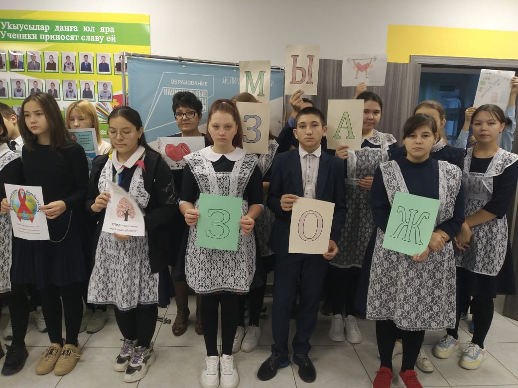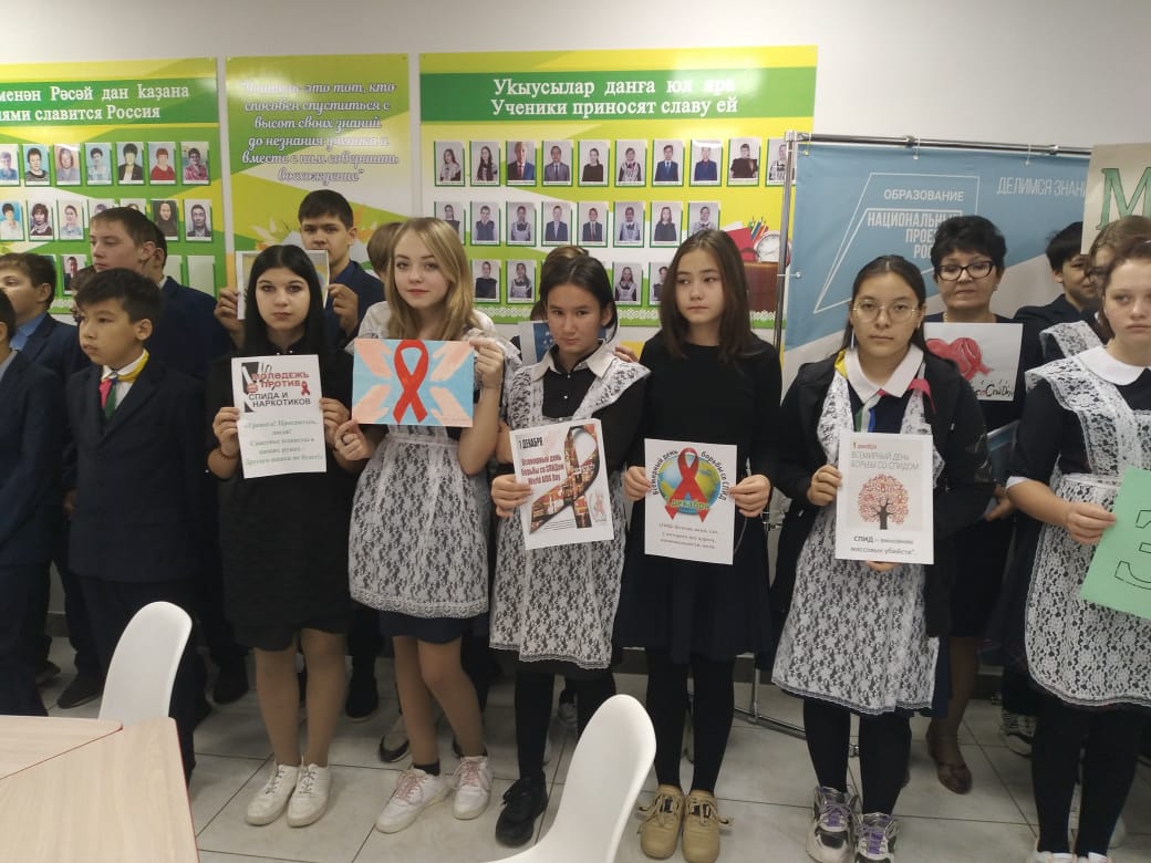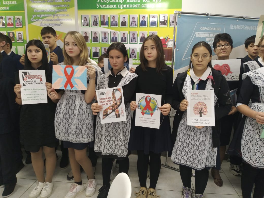 Сегодня обучающиеся 5-11 классов на линейке демонстрировали плакаты, посвященные Всемирному Дню борьбы со СПИДом.