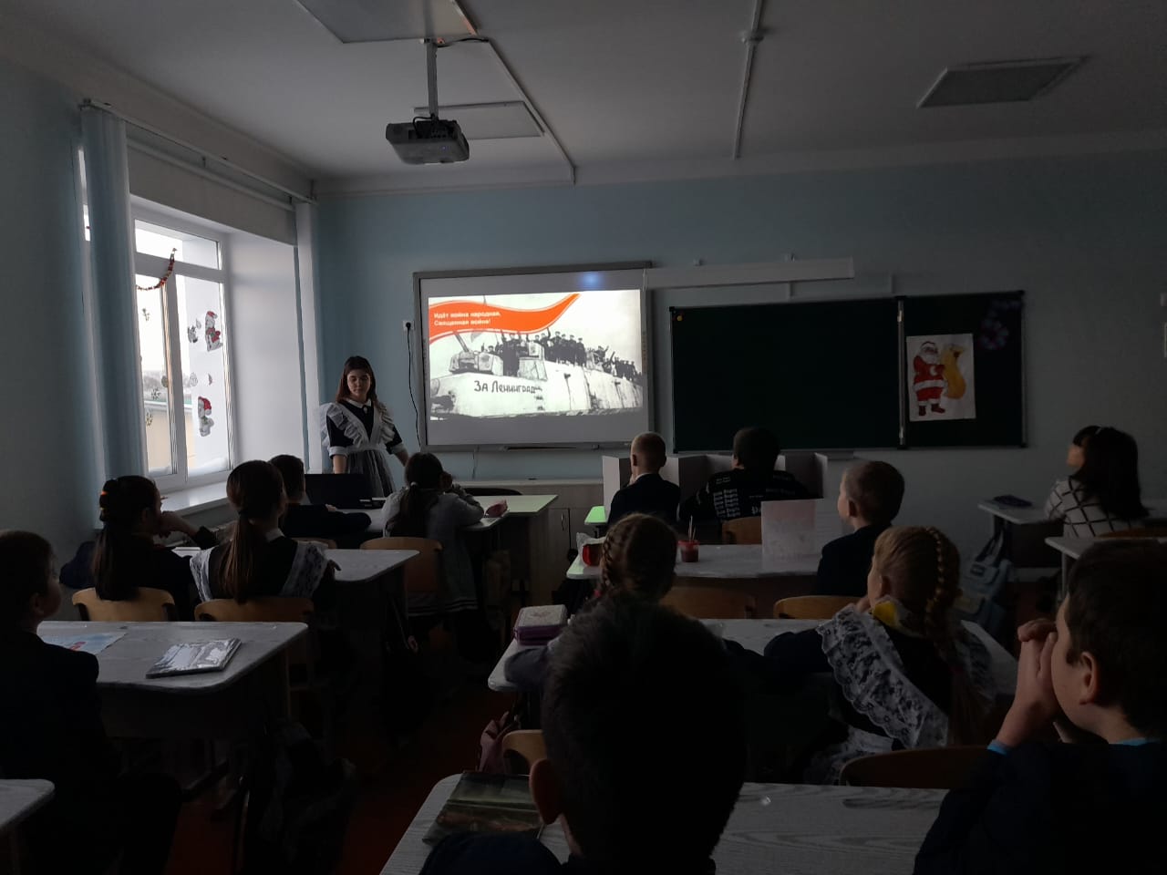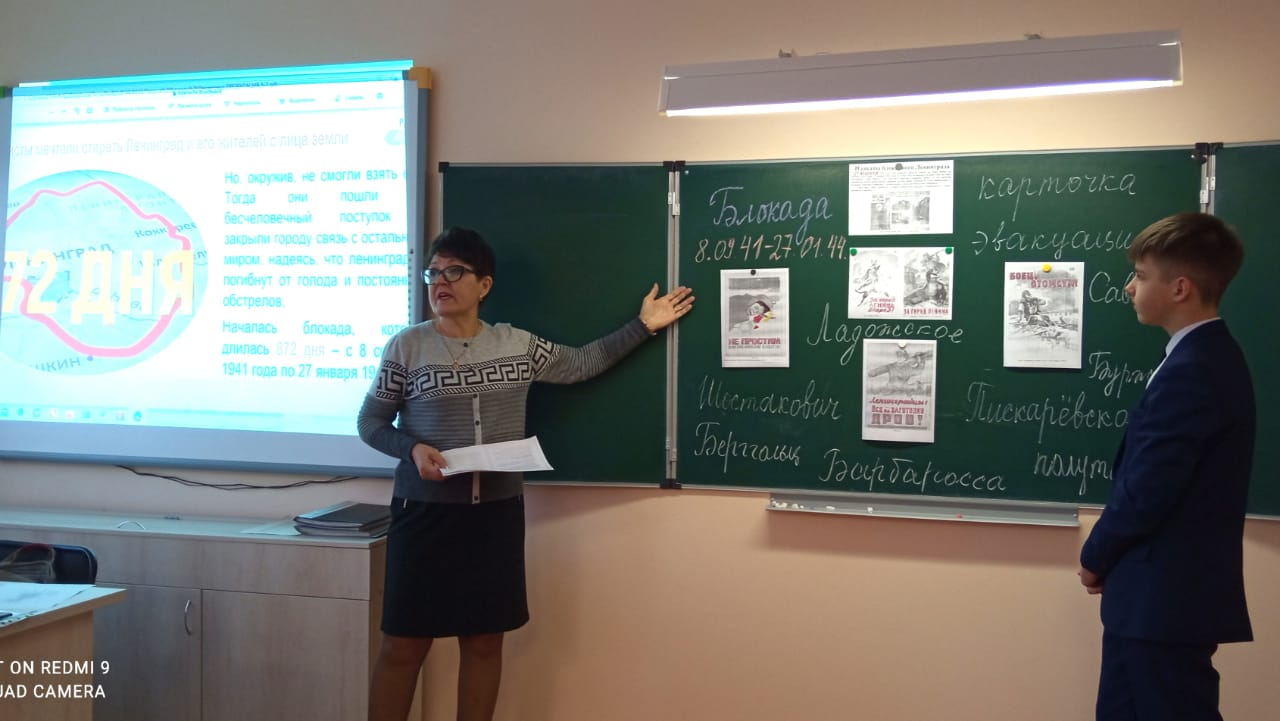 Обучающиеся вспомнили героические страницы истории – блокаду Ленинграда и ее прорыв, говорили о Ладожском озере — дороге жизни, «ленинградском ломтике хлеба», метрономе, «блокадной ласточке» - символе надежды на лучшее, на скорую встречу с родными и близкими, познакомились с отрывками из дневников Юры Рябинина, Тани Савичевой, жившими в Ленинграде во время блокады, посмотрели видеообращение жителей блокадного города.