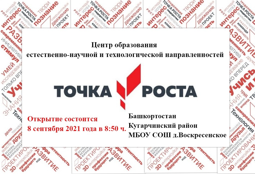 С 8.09.2021 года МБОУСОШд.Воскресенское станет участником масштабного проекта «Точка роста», реализуемого в рамках Национального проекта России «Образование».