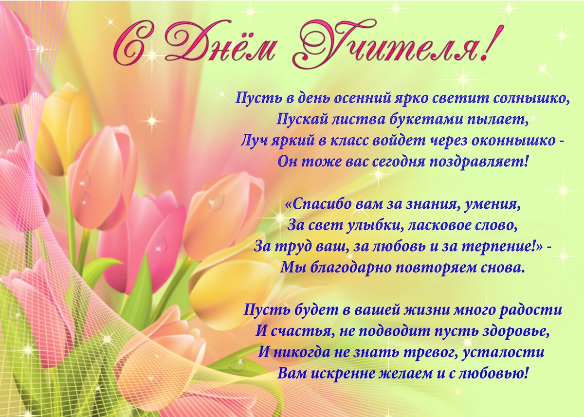 Сегодня светлый и радостный праздник – День учителя! Знания – самое ценное на Земле, и тот, кто их несет и передает новым поколениям, выполняет наиважнейшую миссию.
