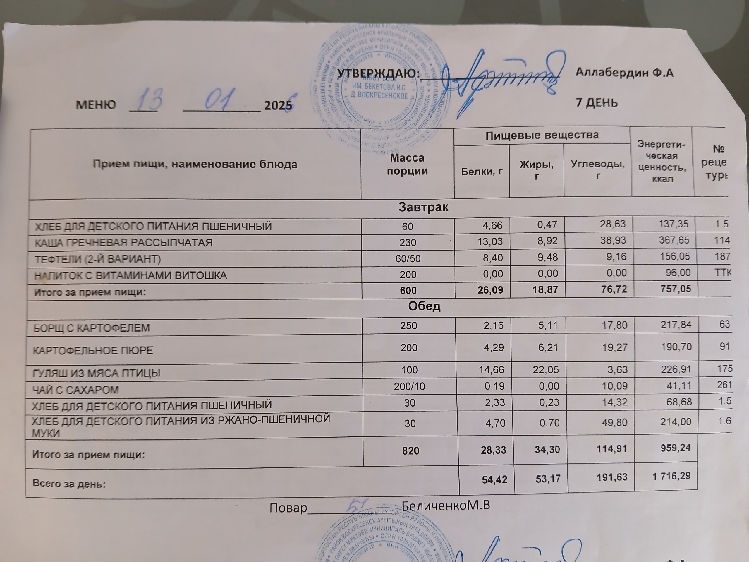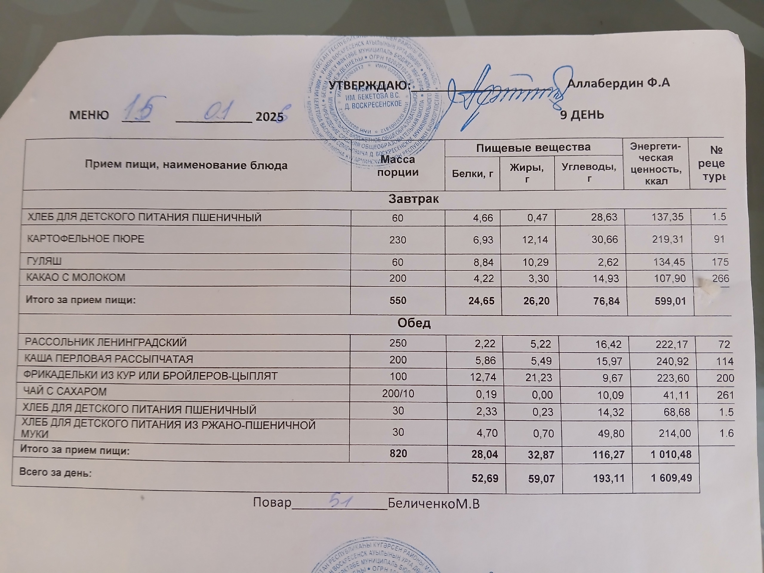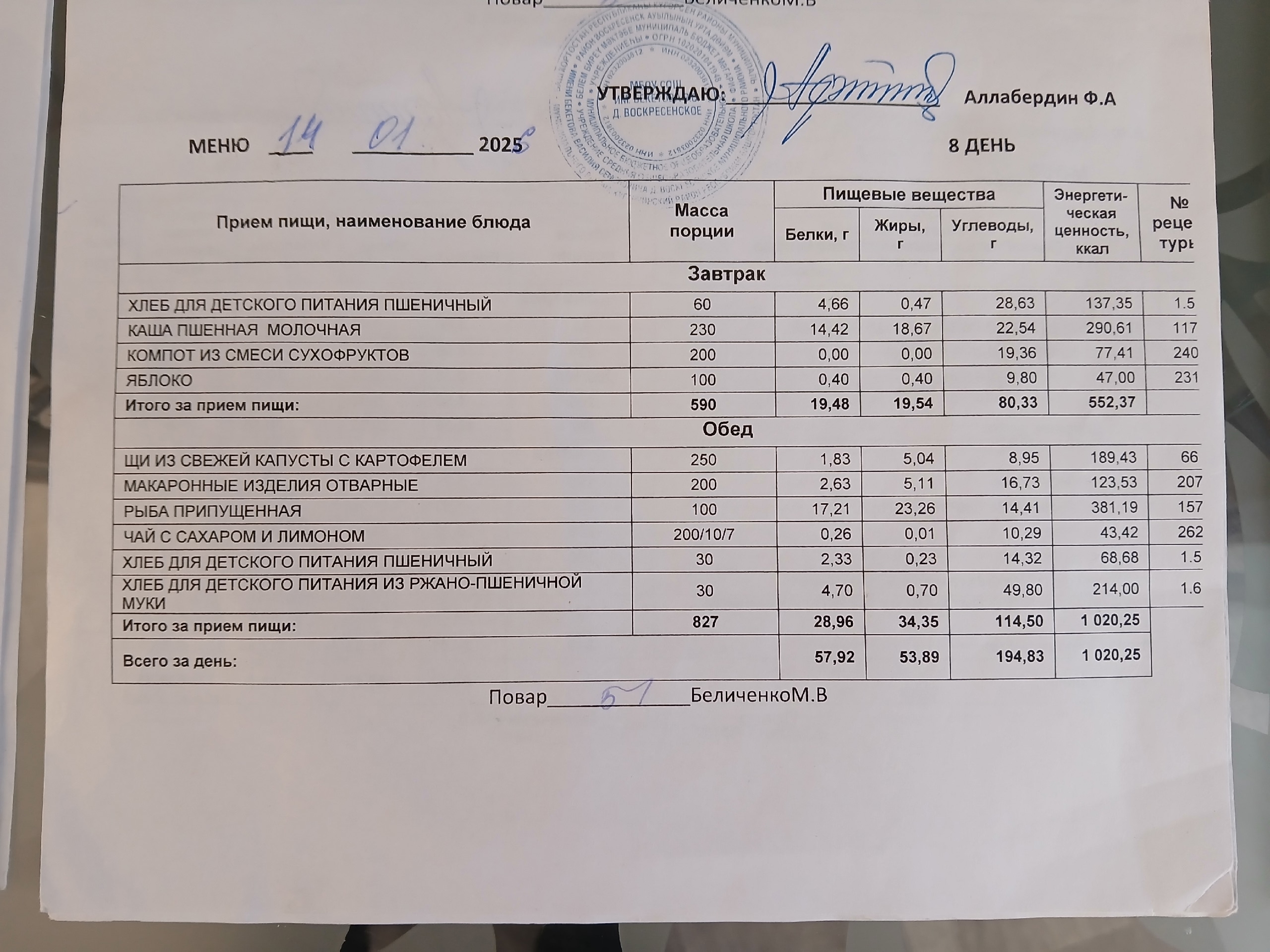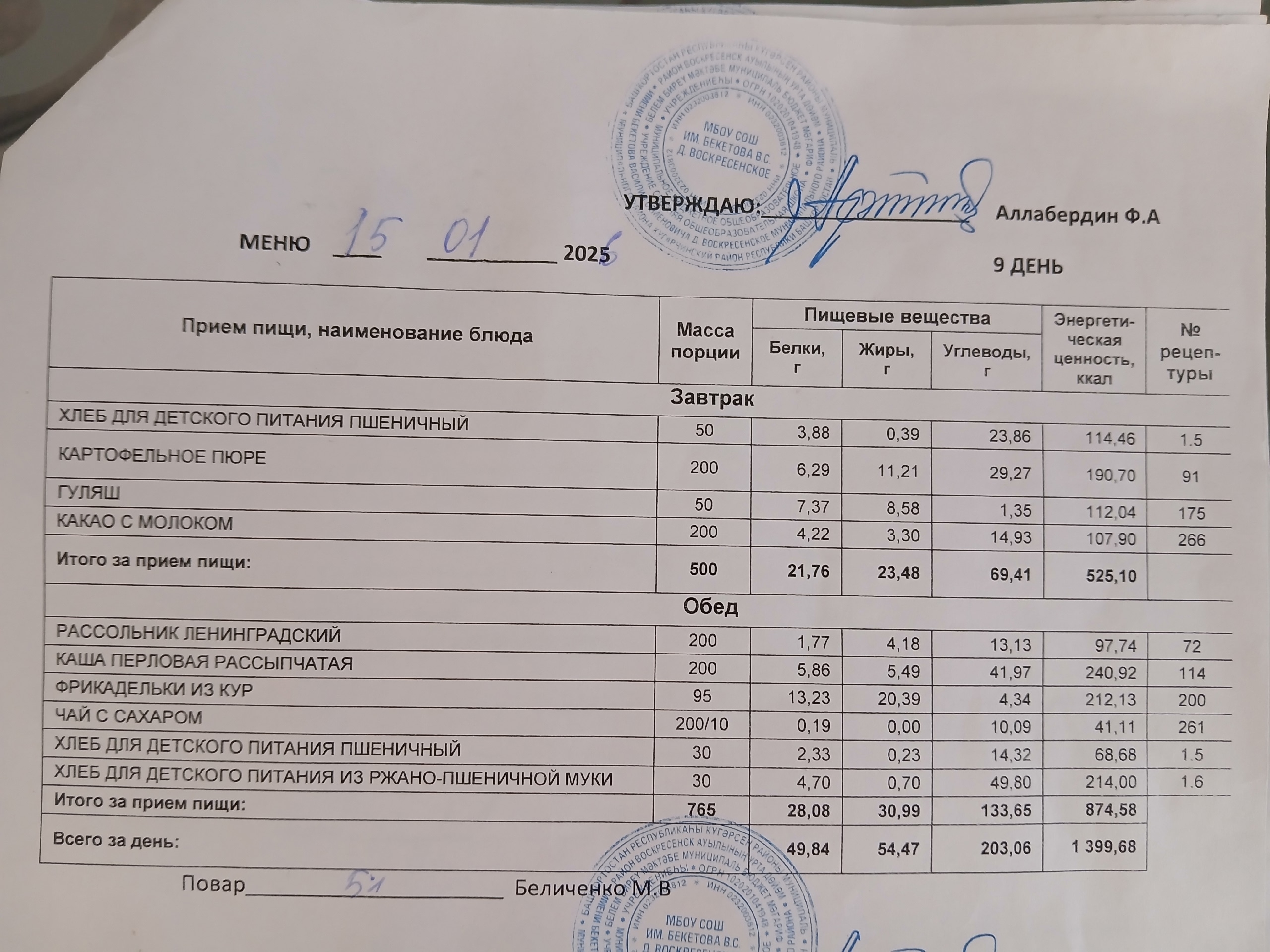 Сведения по организации питания в филиале МБОУ СОШ им.Бекетова В.С.д.Воскресенское ООШ с.Подгорное