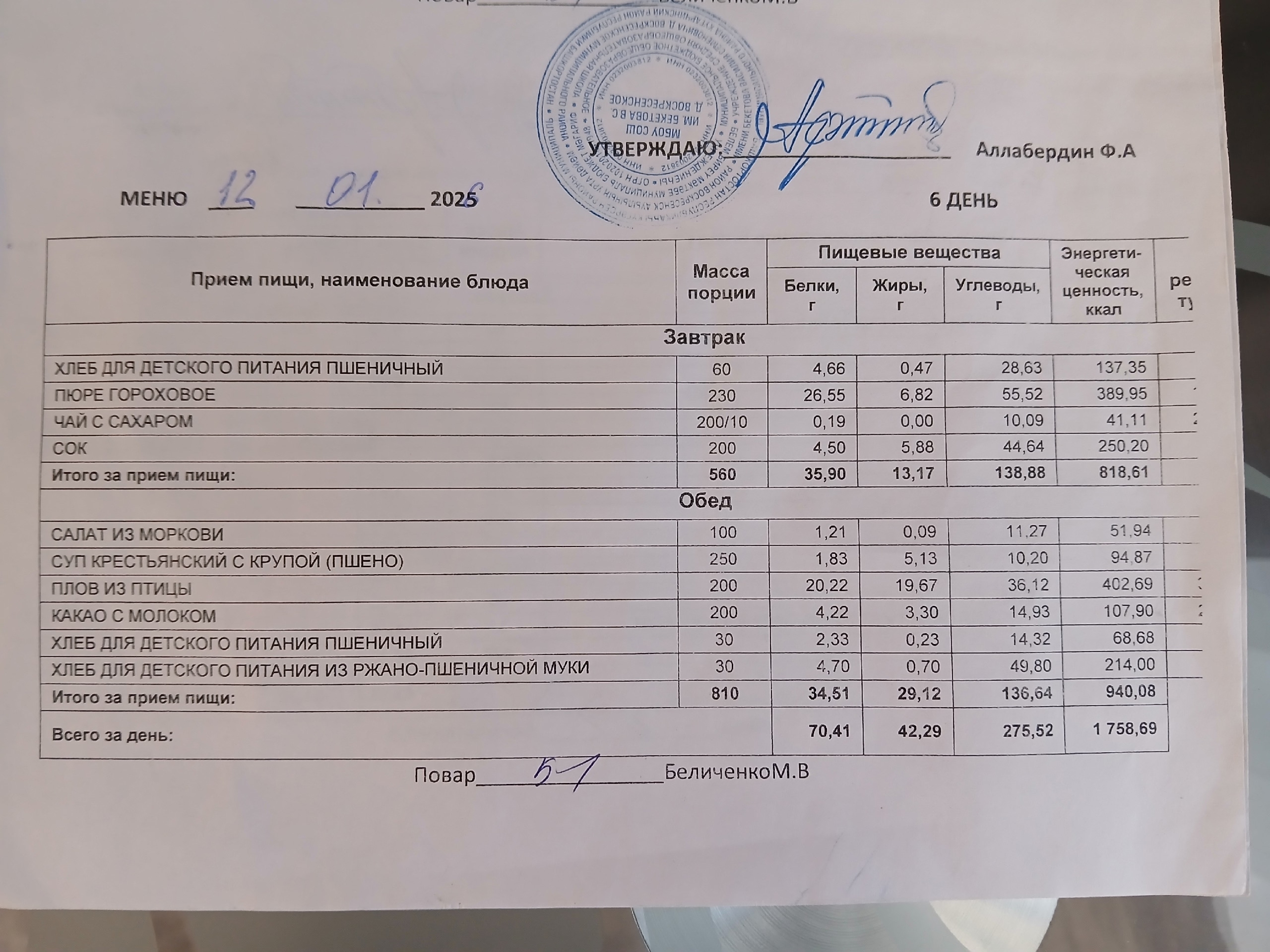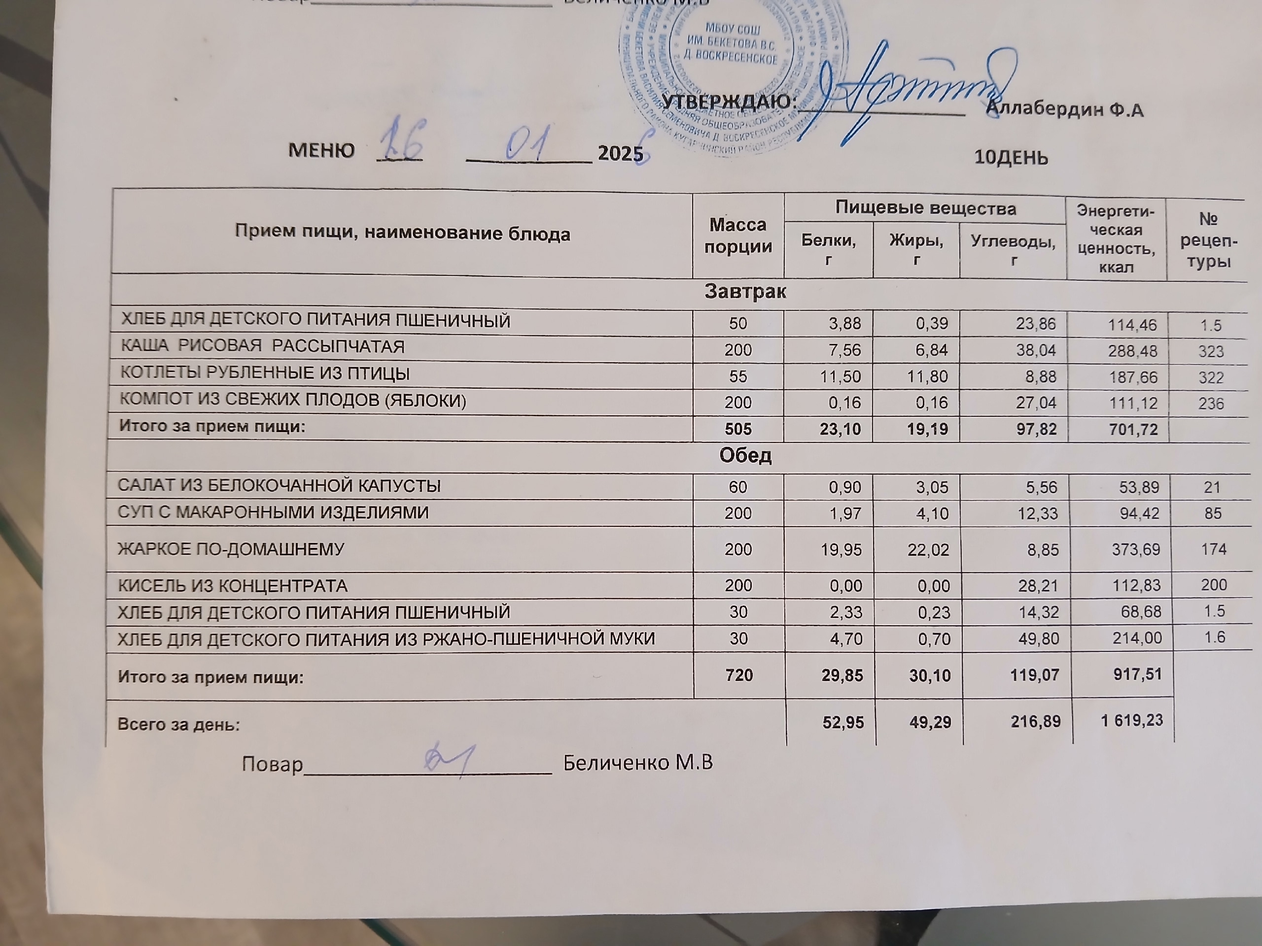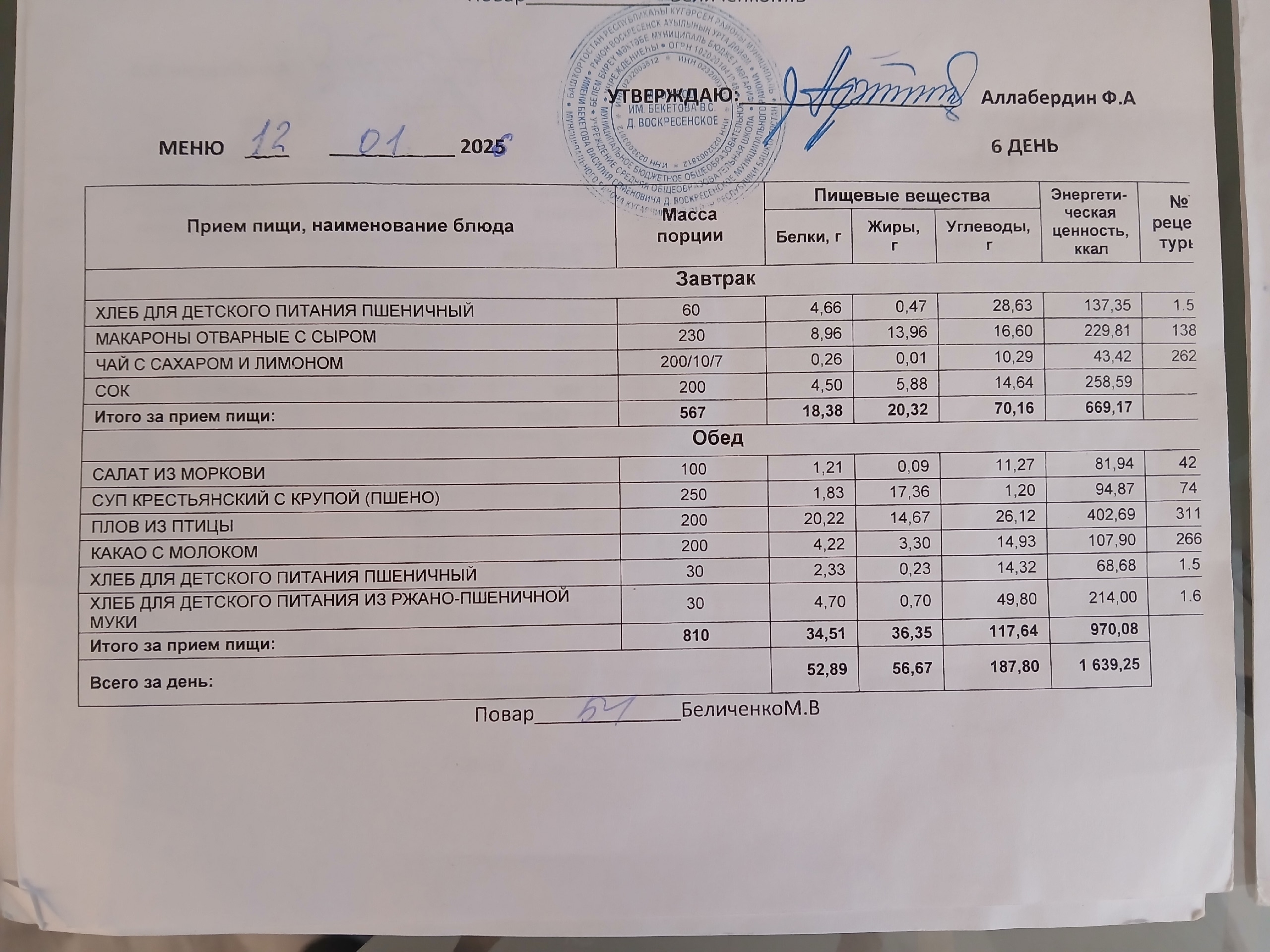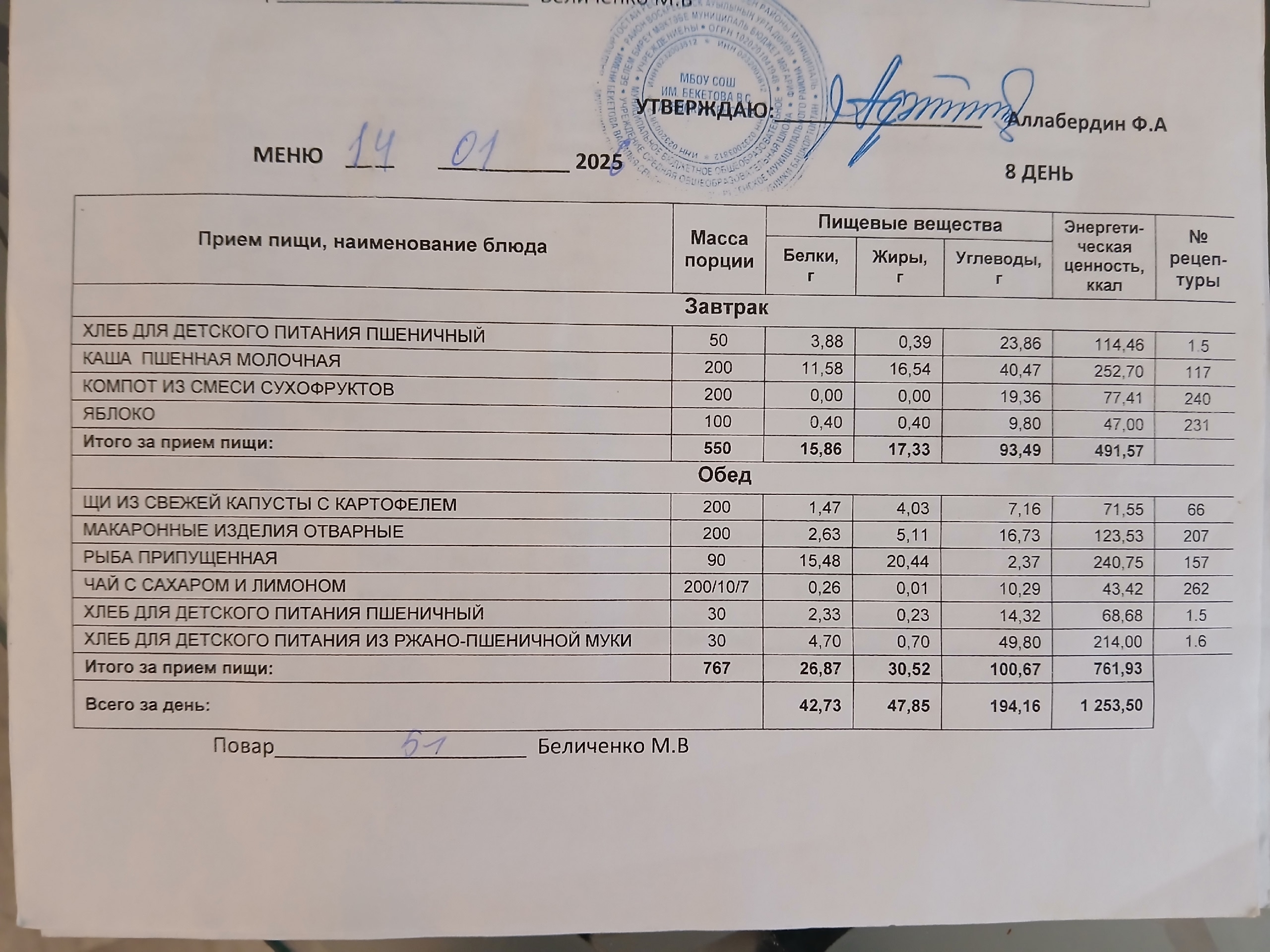 Сведения по организации питания в филиале МБОУ СОШ им.Бекетова В.С.д.Воскресенское ООШ с.Подгорное