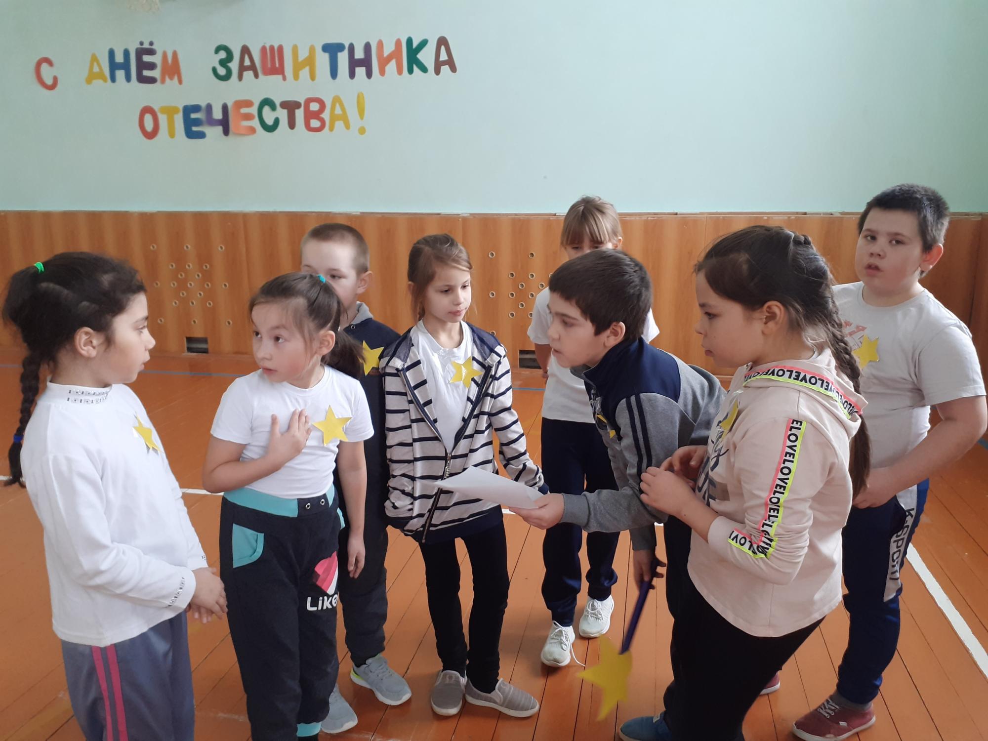 19 февраля, спортивный зал филиала МБОУ СОШ д. Воскресенское ООШ с. Подгорное был накален до предела. В нем весело и шумно прошло состязание "Веселые старты", посвященное 23 февраля-Дню защитника Отечества. После веселой разминки, дети разделились на 2 команды: "Флажки"и "Звездочки".