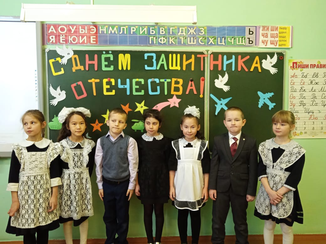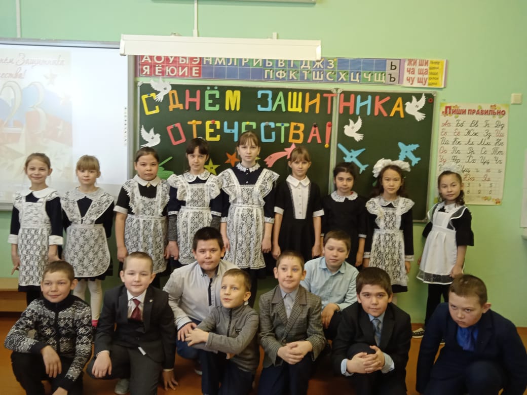 В филиале МБОУ СОШ д. Воскресенское ООШ с. Подгорное прошло праздничное торжество "Слава мужеству и храбрости!", посвященное Дню защитника Отечества. Цели и задачи: развивать у ребят чувство патриотизма, воспитывать любовь к Родине; через песни, стихи познакомить ребят с нелегким трудом военнослужащих, воспитывать уважение к ним; донести до детей, что они будущие защитники Родины. Перед праздником дети посетили школьный музей, рассматривали стенды и экспонаты, связанные с историей вооруженных сил России. На торжество мальчики явились как настоящие солдаты, маршем под музыку. Зрители встретили их стоя, громкими аплодисментами. Девочки читали стихи, пели частушки, песни. Клип о силе и мощи Российской Армии "Мы армия народа" подтянул наших мальчишек, у них загорелись глаза. В душе каждый из них верил, что придет время, они встанут на защиту нашей необъятной Родины. С особым интересом рассматривали поздравительную презентацию, посвященную им самим.