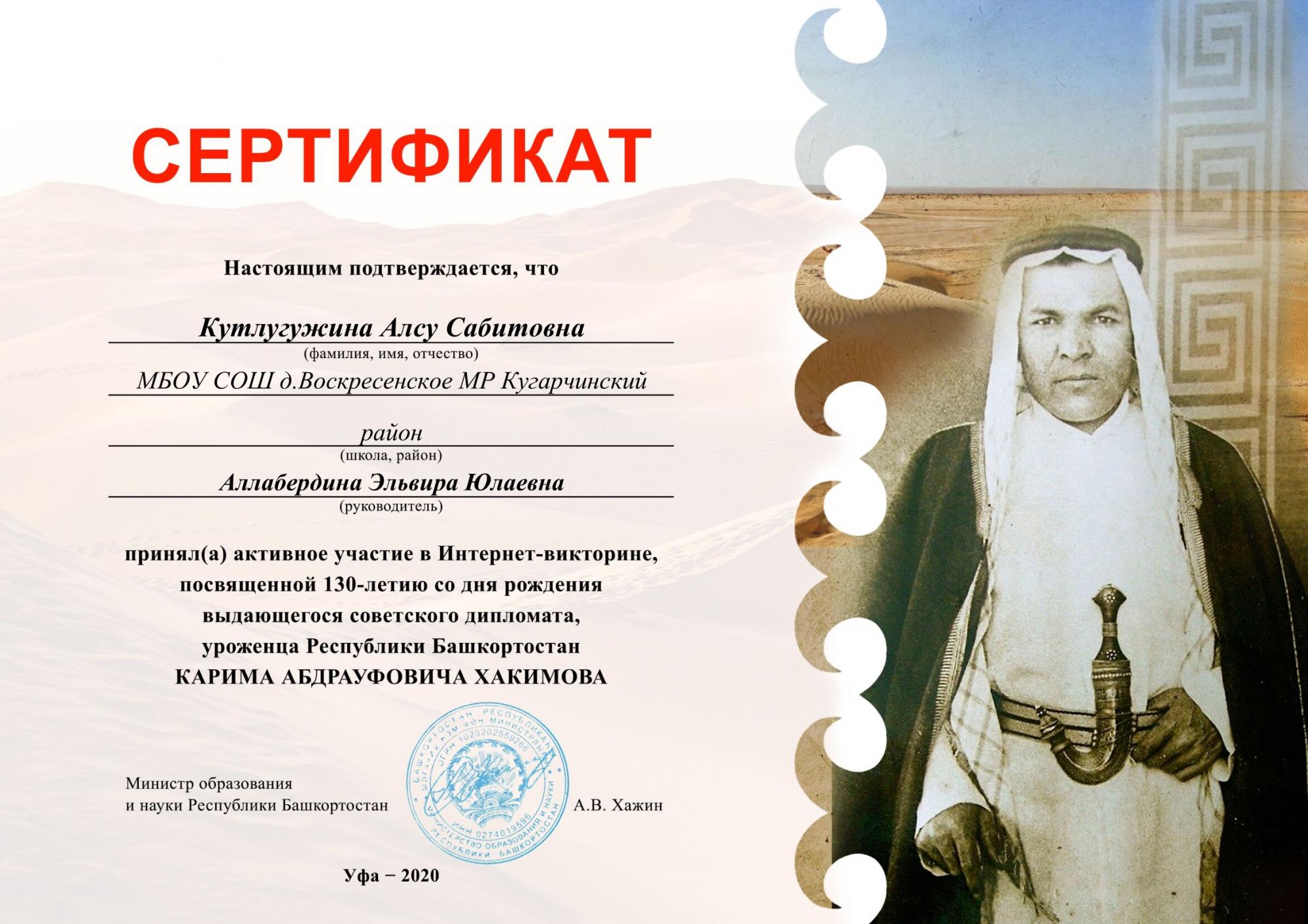 День Башкирского языка. Интернет-викторина, посвященная 130-летию со дня рождения советского дипломата Карима Абдрауфовича Хакимова.