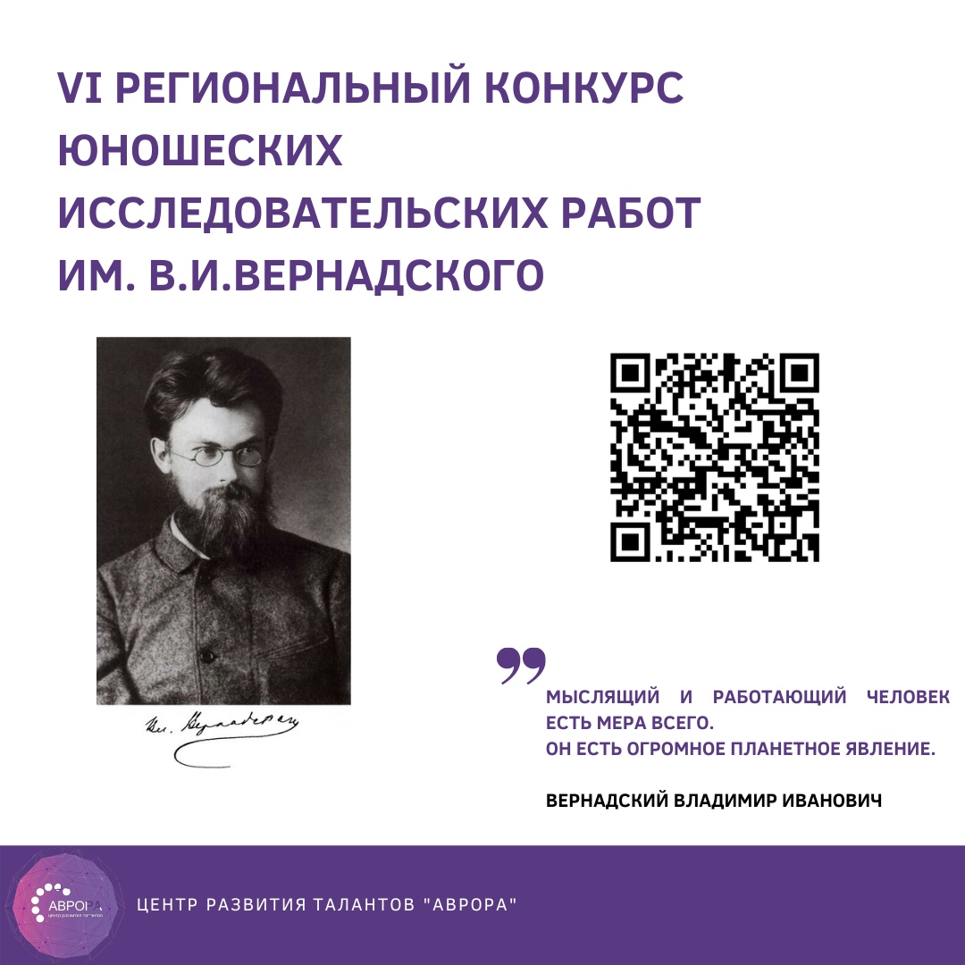 Открыт прием заявок на VI региональный конкурс юношеских исследовательских работ им. В.И. Вернадского
