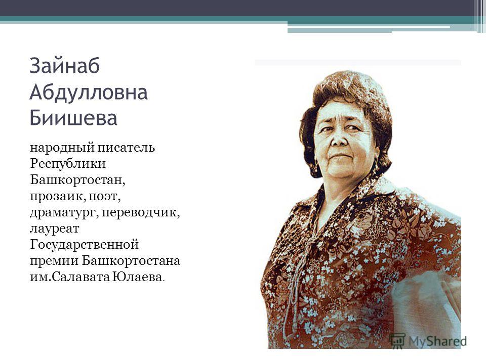 15 января- день рождение лауреата Государственной премии Республики Башкортостан имени Салавата Юлаева, народного писателя Республики Башкортостан, поэта, драматурга и переводчика Зайнаб Абдулловны Биишевой.